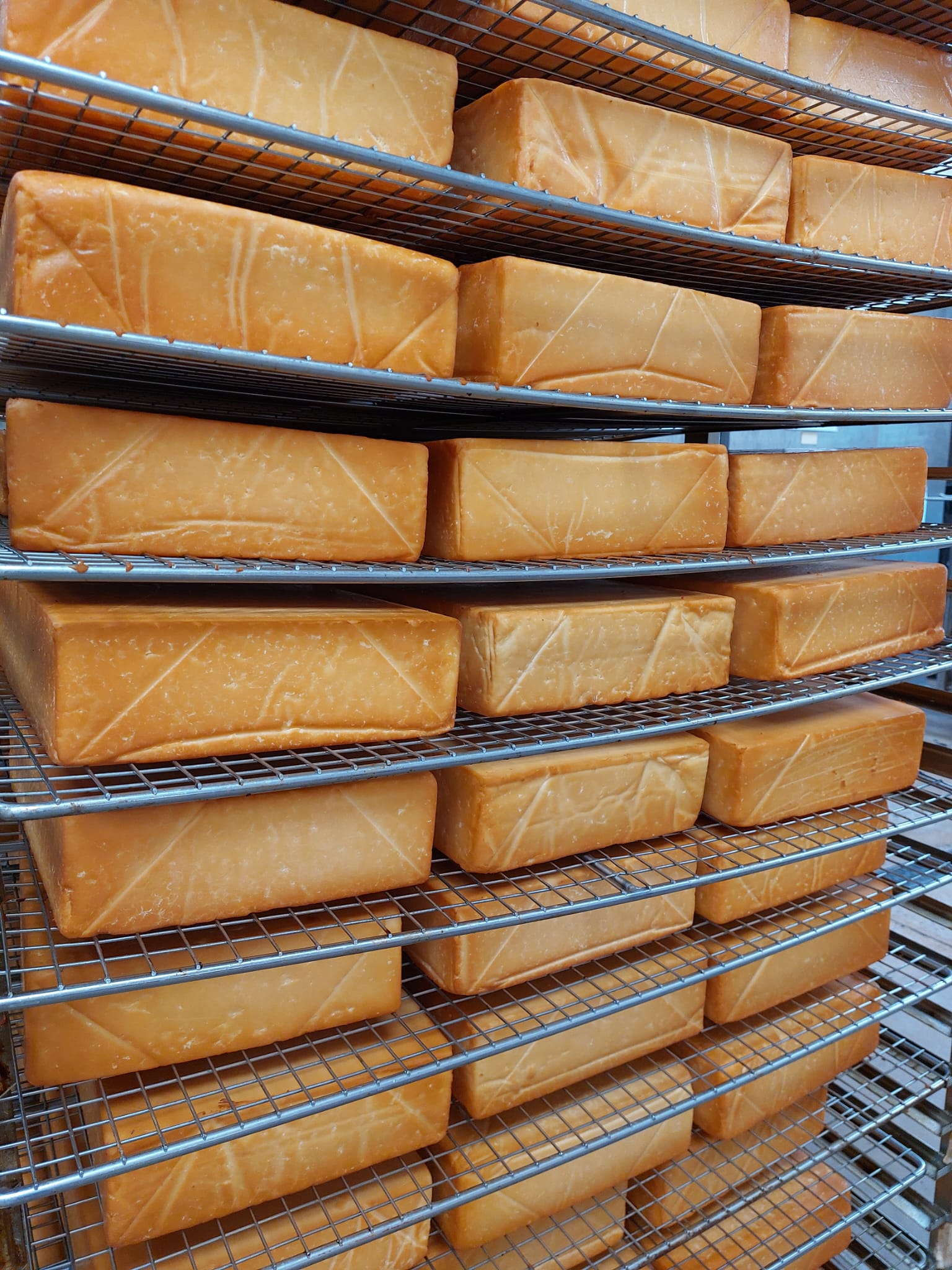 Since our first smoker was installed in 2000, we went on to expand the smokehouse, installing our second smoking kiln in 2014, thinking this would be sufficient to satisfy demand. How wrong we were! As news of our reputation grew and popularity soared for naturally smoked cheese, we saw a sharp rise in demand for our services and therefore installed our third, 4-chamber smoking kiln in January 2023. We now have a colossal smoking capacity of 40 tonnes per week, enabling us to satisfy demand in state-of-the-art smoking facilities.
